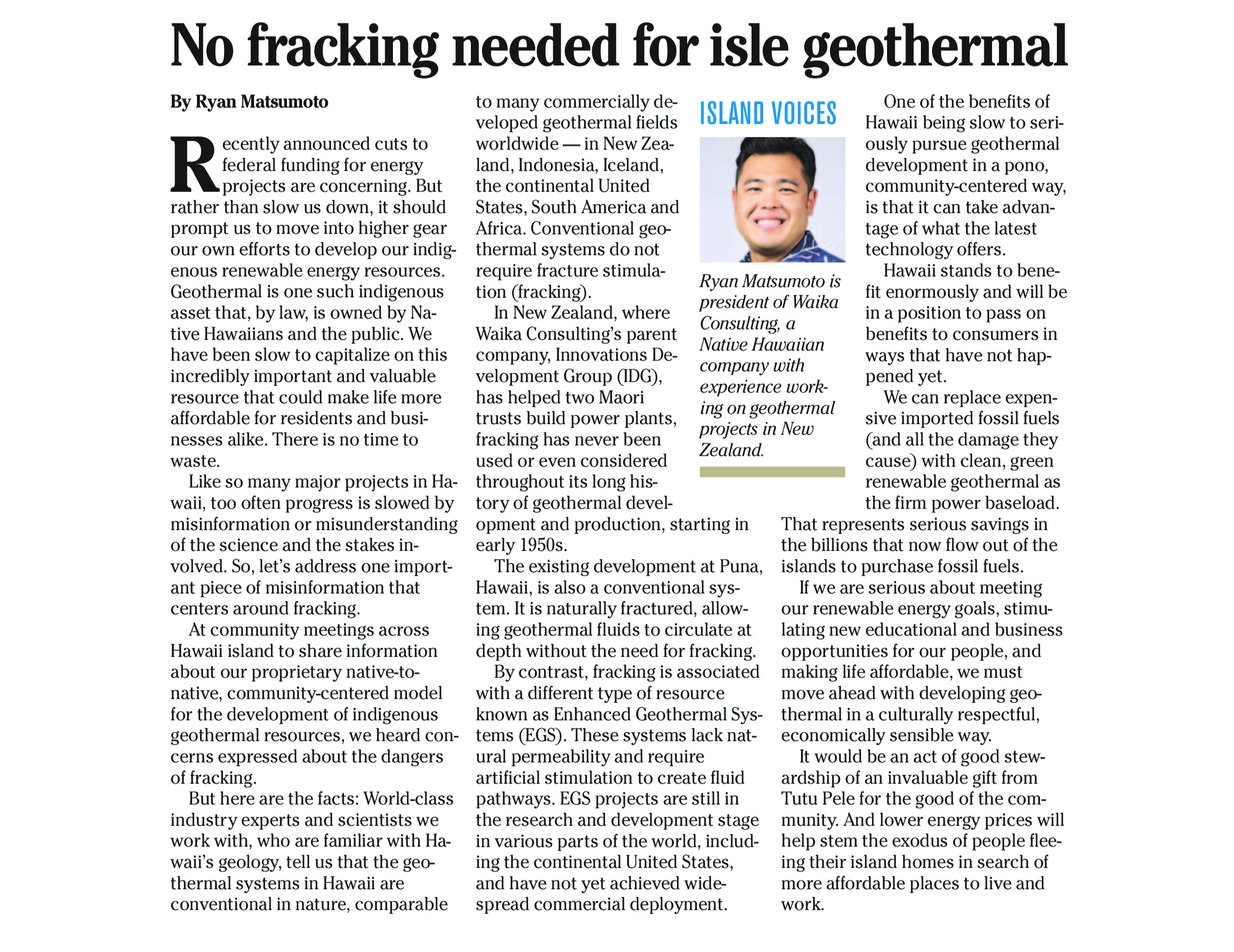 No fracking needed for isle geothermal